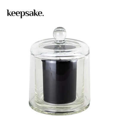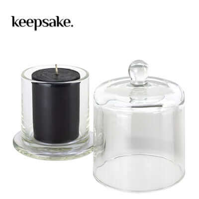 Introducing the Keepsake Cloche and Candle Set, a perfect blend of elegance and functionality. This exquisite set features a clear glass cloche designed to keep your candle dust-free, ensuring it remains pristine and ready to illuminate your space.
