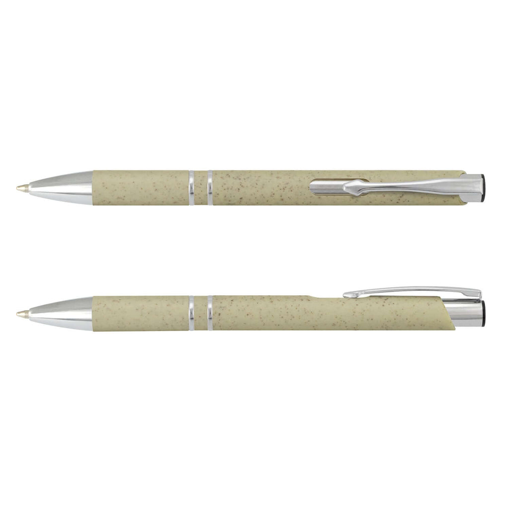 The Panama PP Pen is a stylish and eco-friendly writing instrument designed for everyday use. Its retractable ballpoint mechanism ensures convenience, while the barrel is crafted from a sustainable 50/50 blend of wheat straw fiber and ABS plastic.
