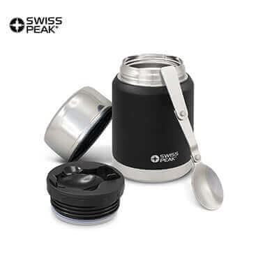 The innovative screw-on serving bowl and foldable stainless steel spoon make dining on-the-go effortless. Presented in an elegant Swiss Peak branded gift box, this BPA-free container is perfect for gifting or personal use.