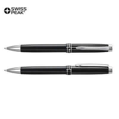 Featuring a precision ballpoint mechanism, it offers an impressive writing distance of 1200 meters with its blue Dokumental ink. The subtle Swiss Peak logo on the center ring and cap adds a touch of refinement, while the pen is beautifully presented in a Swiss Peak cardboard sleeve, making it an ideal gift for any occasion.