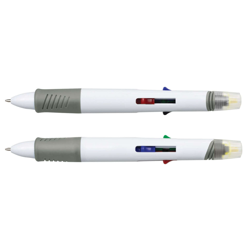 The Tetra Highlighter Pen is a versatile writing tool designed for both functionality and comfort. This multi-purpose retractable pen features a four-colour ballpoint with red, green, blue, and black inks, providing 800 meters of smooth writing.