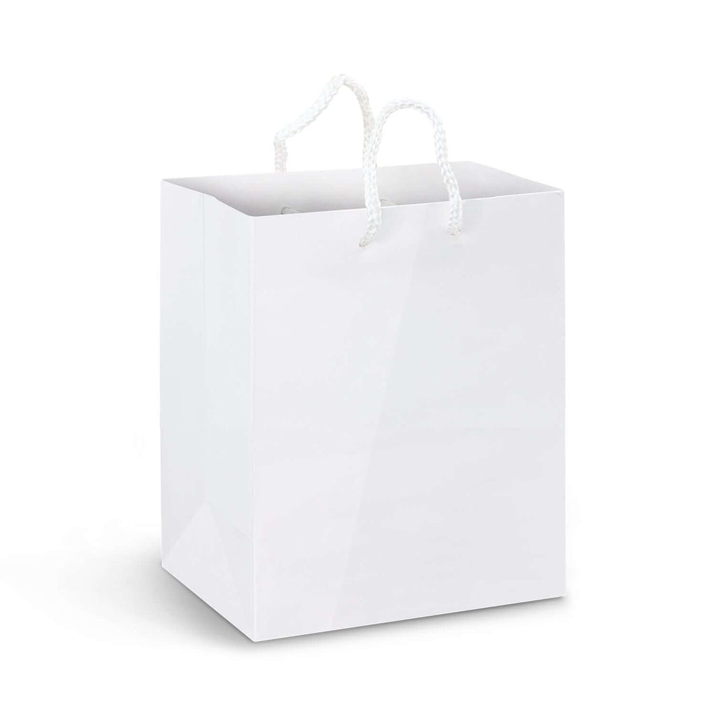 This medium-sized paper carry bag is designed for durability and style. Featuring strong woven polypropylene rope handles, it ensures comfortable carrying.