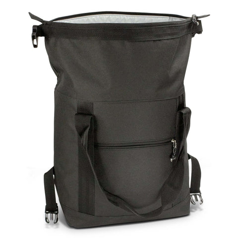 The Roll Top Cooler Bag is a sophisticated 14L cooler designed for convenience and style. Made from durable 600D polyester, it features a water-resistant PEVA lining and PE foam insulation to keep your items cool.