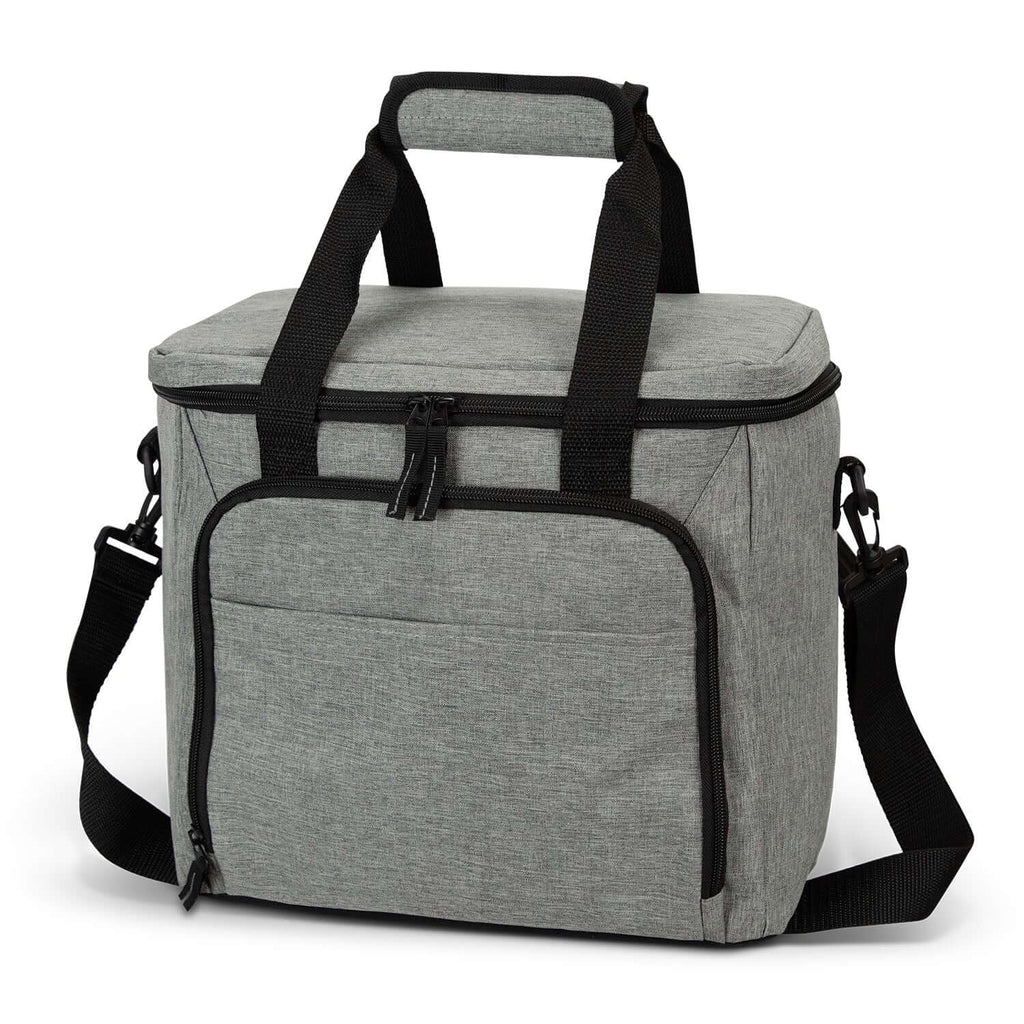 Crafted from durable heather grey polyester, it features PE foam insulation and a PEVA inner liner, ensuring your items stay cool. The spacious main zippered compartment and convenient front zippered pocket offer ample storage for all your essentials.