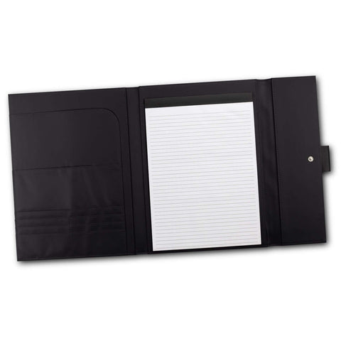 The Lancaster Portfolio is a stylish and functional accessory designed for professionals. Made from high-quality PU leather, it features a sleek dome closure and a convenient pen loop.