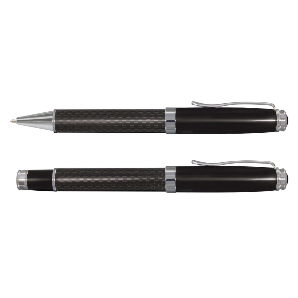Each pen features genuine carbon fibre barrels complemented by shiny chrome accents, ensuring a stylish writing experience. The ball pen is equipped with a large volume refill, offering 1800 metres of high-quality German Dokumental ink, while the rolling ball pen boasts a 1500-metre refill that remains reliable even without a cap.